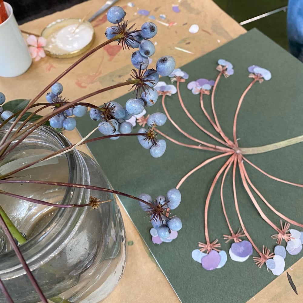 For inspiration we will have freshly picked garden flowers . This is a wonderful way of getting to know plants as you slowly piece the paper bits together.
